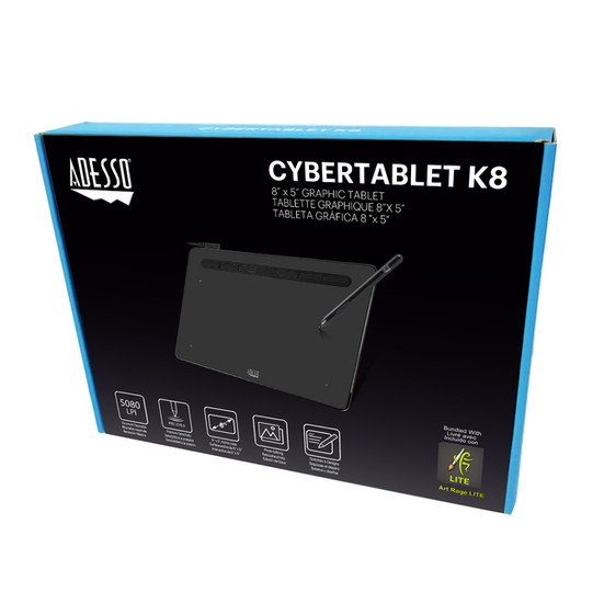The Cybertablet K8 is an advanced graphic tablet that offers both PC and Mac users superior cursor control, greater productivity and higher efficiency. Perfect for art, business, presentations, and projects. The Cybertablet features 8192 levels of pressure sensitivity to imitate the subtleties of a brush stroke and other writing tools, while its multiple programmable hot keys provide various shortcuts to commonly used computer tasks. Plus, the drawing area allows increased precision and detail. This high quality graphic tablet is ideal for document annotation, free hand illustrations, graphic design, whiteboard presentations, or generally more precise cursor control.