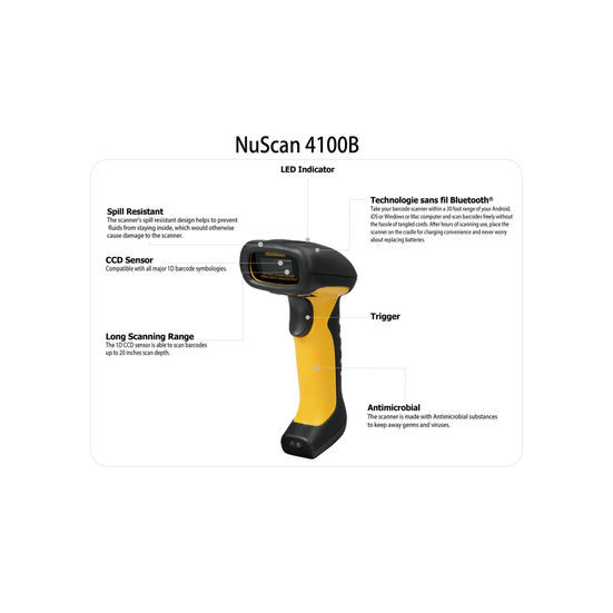 - NuScan 4100B Bluetooth Antimicrobial Waterproof CCD Barcode Scanner