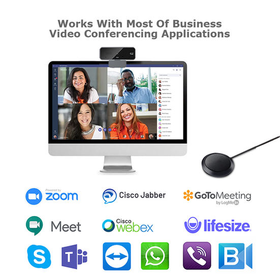 This microphone is designed for small or medium online meetings. The microphone is compatible with most video conferencing applications such as Zoom, Skype, Webex, GoToMeeting, Google Meet, Microsoft Teams and many more. Additional uses include court reporting, seminars, and remote training.
